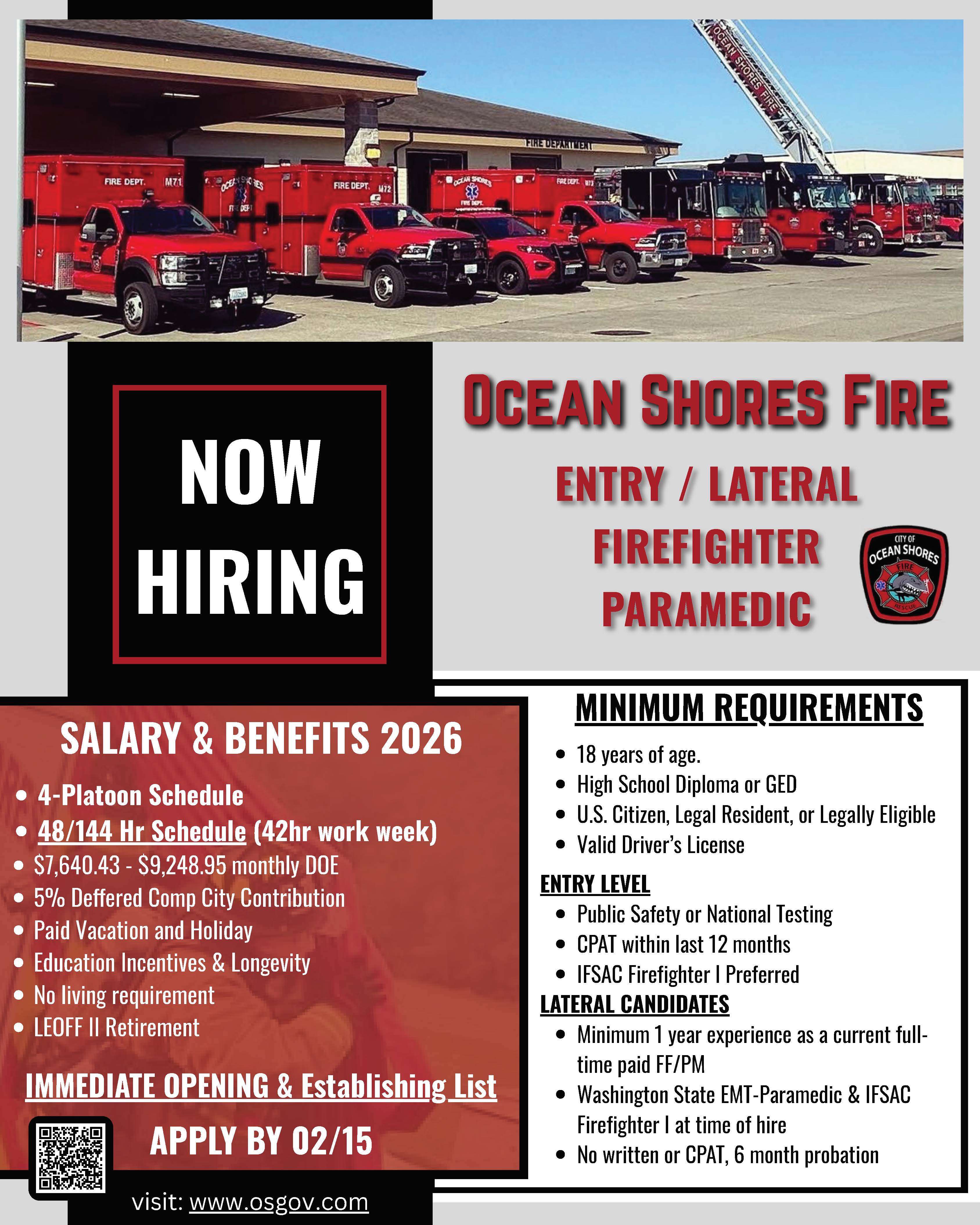 Ocean Shores Fire Department - Entry Level Firefighter Paramedic